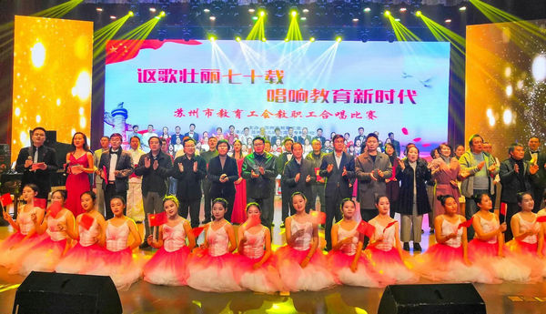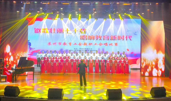 为庆祝中华人民共和国成立70周年,深入学习贯彻习近平新时代中国特色社会主义思想和党的十九大精神,激发广大教职工爱国爱岗爱生热情,紧紧围绕新时代教育事业改革发展和工会工作中心任务,以教职工为本,以改革为要,以实干为重,努力开创党的群团工作新局面。由中国教育工会苏州市委员会组织开展的“中国梦.劳动美.教育情”主题教育系列活动之一的“讴歌壮丽70载,唱响教育新时代”教职工合唱比赛于11月30日在苏州幼儿师范高等专科学校举行。