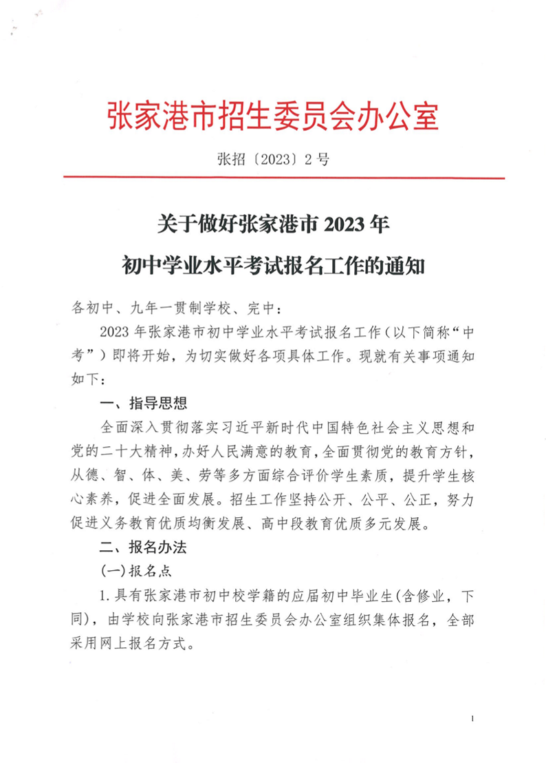 关于做好张家港市2023年初中学业水平考试报名工作的通知