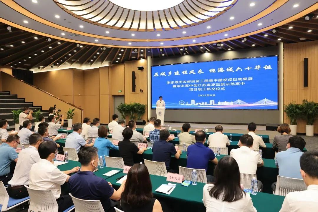 8月11日上午,张家港市政府投资工程集中建设项目成果展暨梁丰高中创江苏省高品质示范高中项目竣工移交仪式在梁丰高级中学新建项目现场举行。市委书记韩卫,副市长梁曦、蒋鹏,集中建设工作相关职能部门主要负责人,各区镇、街道分管负责人,梁丰高中校领导,其他历年政府投资集中建设项目参建单位代表参加了活动。