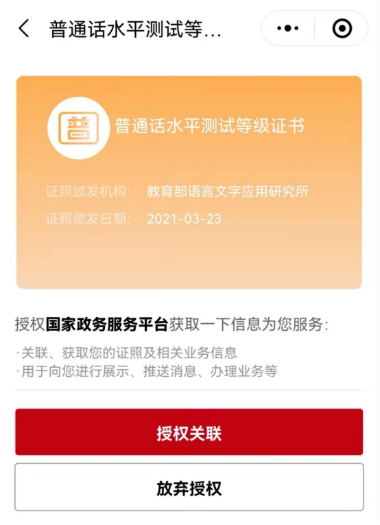目前,“国家政务服务平台”已上线普通话水平测试等级证书。凡是在“全国普通话培训测试信息资源网(www.cltt.org)”能查询到成绩的考生均可通过“国家政务服务平台”APP、微信小程序、支付宝小程序绑定电子证书。电子证书会比纸质证书更早查询到。